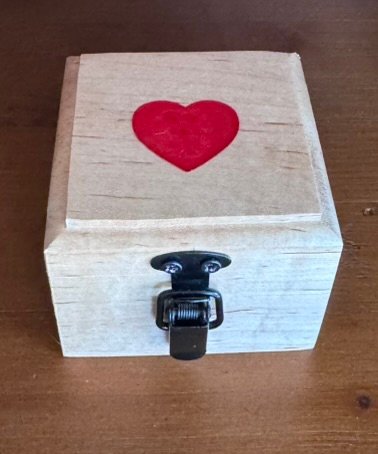 This box measures 3 inches in length by 3 inches tall by 3 inches deep. It is constructed with natural maple, embedded walnut and clear finish, giving this